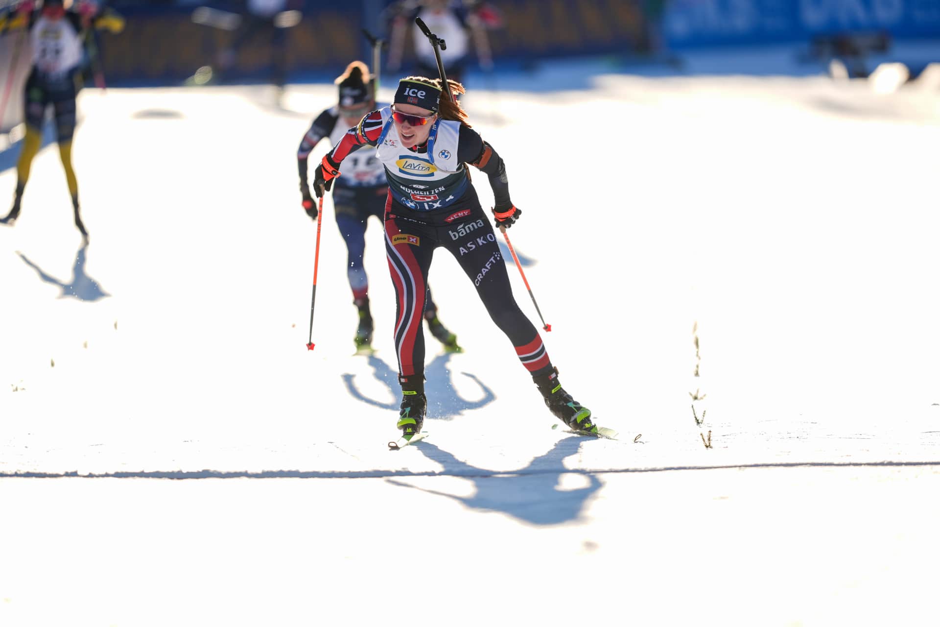 Второй с одним промахом стала Анна Магнуссон из Швеции, стартовавшая с третьей позиции, а на третье место переместилась норвежка Марен Киркейде.