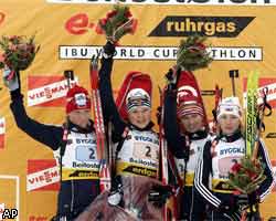 Биатлон: женская команда выигрывает золото в эстафете, мужская - бронзу
