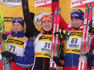 Благодаря хорошей скорости (третий результат после Байи и Тьорхом) и безошибочной стрельбе Кати Вильхельм завоевала сегодня первое индивидуальное золото в этом сезоне Кубка мира и передвинулась на вторую строчку общего зачета. Несмотря на 19-й результат в сегодняшней гонке, Ольга Пылева сохранила позицию лидера общего зачета. Однако ей сегодня очень не повезло - после второй стрельбы, уже на дистанции, ее сбила на полном ходу спортсменка из Молдавии.