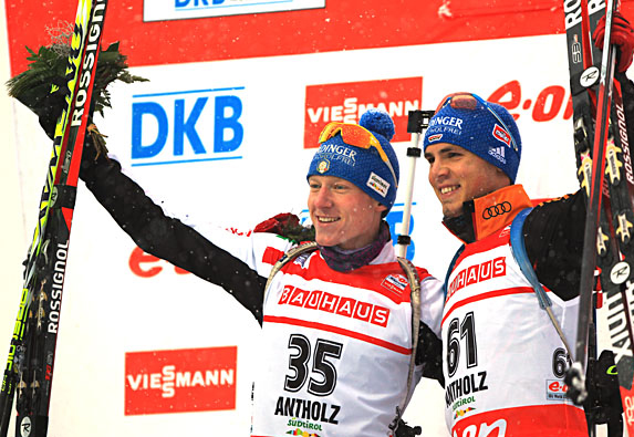 Сборная Германии отыгрывается за неудачные пять этапов Кубка мира подряд, где они имели всего одно призовое место в личных гонках на две команды. В Антерсельве этот результат был повторен в первой же гонке, где серебро завоевала Андреа Хенкель, а теперь и мужская сборная имеет полный комплект: 1-1-1. К радости своих болельщиков, немцы заявляют перед Олимпиадой о том, что их команда по-прежнему в числе мировых лидеров не только в эстафетах.