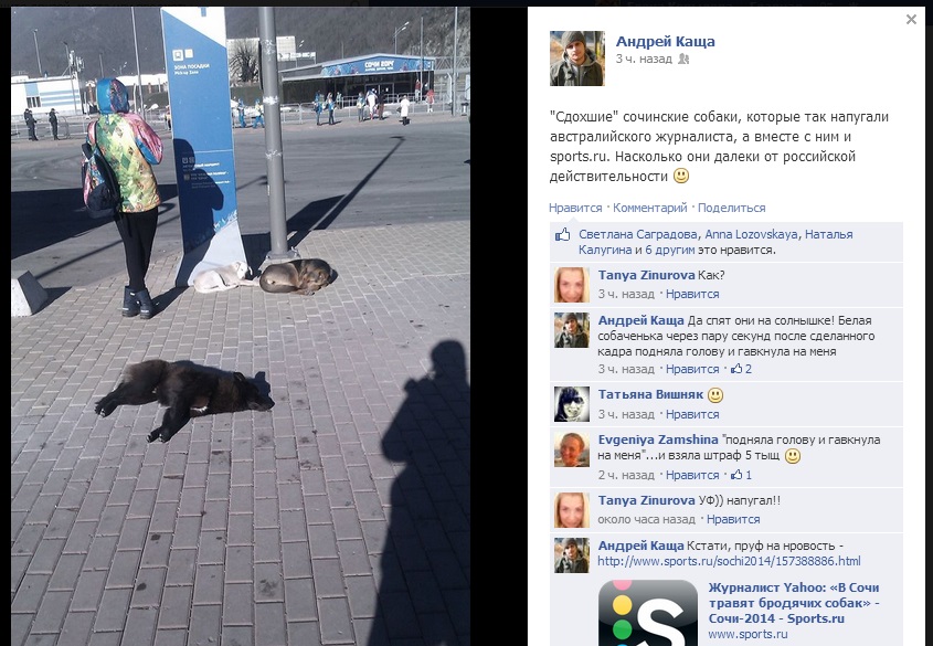 В общем, весело у нас. На самом деле относятся к животным по-человечески здесь в основном приезжие, а местные жители бездомных зверушек не жалуют. В санатории например, отдыхающему, глядящему сказочной красоты кошечку, охранники запросто могут рассказать, что "когда их становится слишком много, зовём Васю, он отстреливает". К Олимпиаде это не имеет никакого отношения, увы.