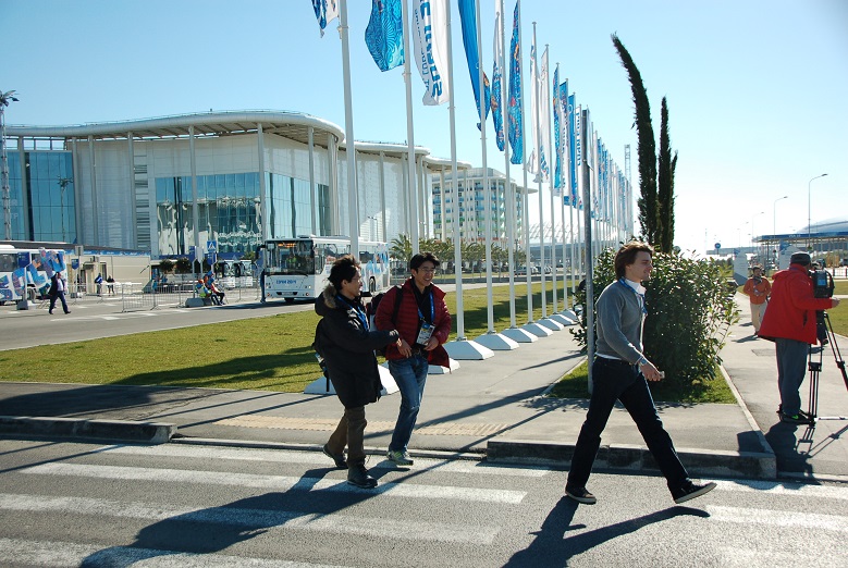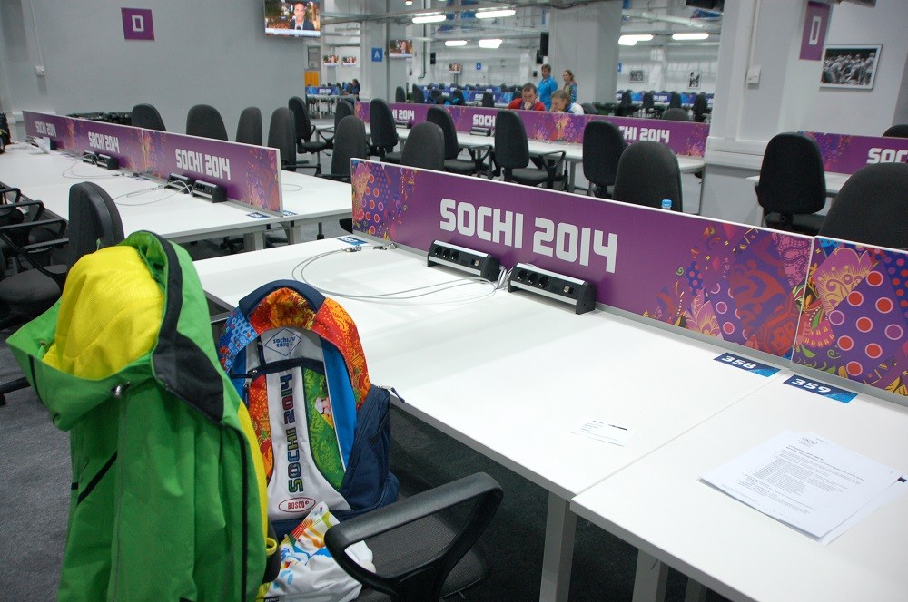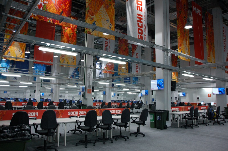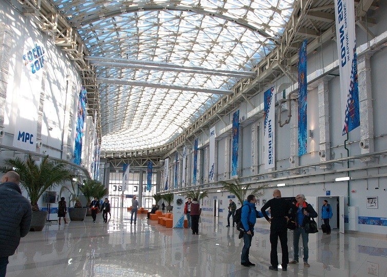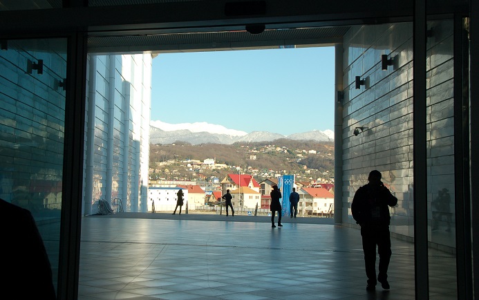 Хостел миленький и вид из окна на море шикарный, но я только оставляю там вещи и еду в Олимпийский парк. В отличие от Лауры здесь я ещё не была, хотя посещала Сочи четыре раза за последний год. Центральный пресс-центр огромный, красивый и функциональный, а после Игр здесь, думаю, будет гигантский торговый центр. Экскурсия по пресс-центру занимает остаток дня, заодно получаю сувенирный набор, ключ от камеры хранения для оборудования и кучу информации о предстоящих мероприятиях.