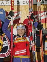 Самым поразительным стал результат победительницы гонки - 32-х летней шведки Анны-Карин Олофссон: допустив, как и Байи, два промаха, Олофссон "привезла" Байи на финише почти две минуты(!) и завоевала первое в своей карьере золото КМ. Даже Ольга Зайцева, получившая на одну штрафную минуту меньше, уступила победительнице 40 секунд. А Наталья Гусева с двумя промахами смогла подняться на третью ступень пьедестала, обыграв Байи на 3 секунды. "Серебро" в этой гонке приносит Ольге желтую майку лидера общего зачета КМ!