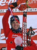 Воскресная победа в масс-старте в Антерсельве стала для 33-летнего норвежского спортсмена Оле-Эйнара Бьорндалена 79-й индивидуальной победой на этапах Кубка мира по биатлону. У него на счету также 1 победа на этапе Кубка мира по лыжным гонкам. В истории лыжных видов спорта (включая биатлон) есть всего один спортсмен, добившийся большего - шведский горнолыжник Ингемар Стенмарк выигрывал этапы Кубка мира 86 раз. Победы на этапах Кубка мира в лыжных видах спорта