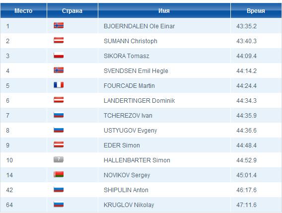 Анализ прохождения дистанции спортсменами в мужской индивидуальной гонке