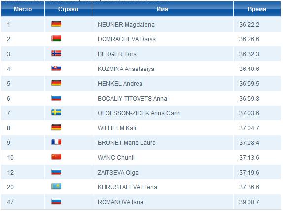 Лучшие 10 спортсменок по скорости прохождения дистанции