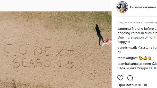 «Увидимся в следующем сезоне», – написала Мякяряйнен.