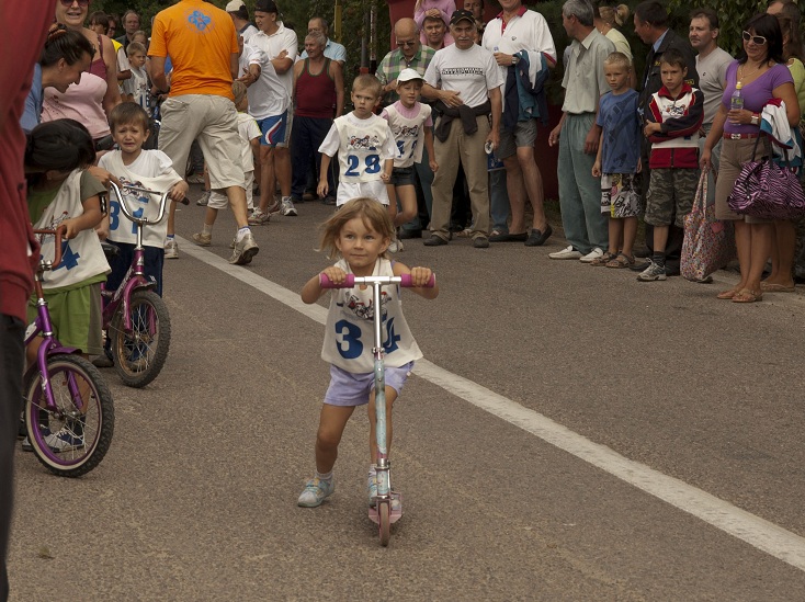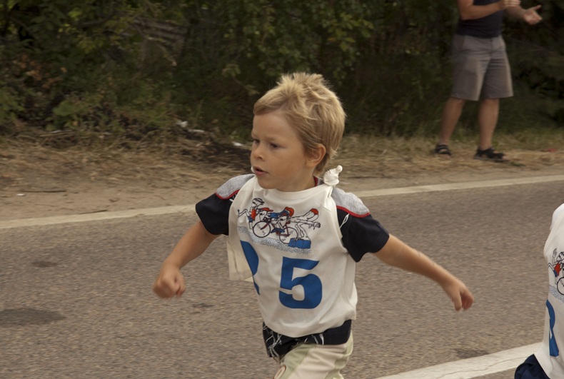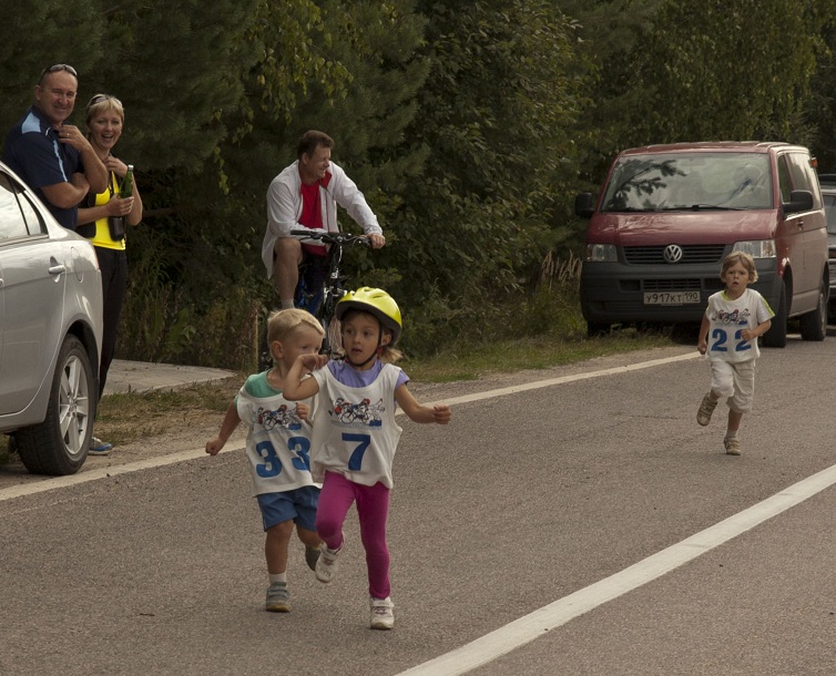 Традиционно открывают соревнования самые маленькие участники — от трёх до семи лет. В этом году у них был свой сухопутный триатлон, то есть дистанция состояла из трёх этапов: бег, вело и снова бег. Такую же по содержанию, но чуть более длинную дистанцию преодолели и участники постарше, дети 7-10 лет.