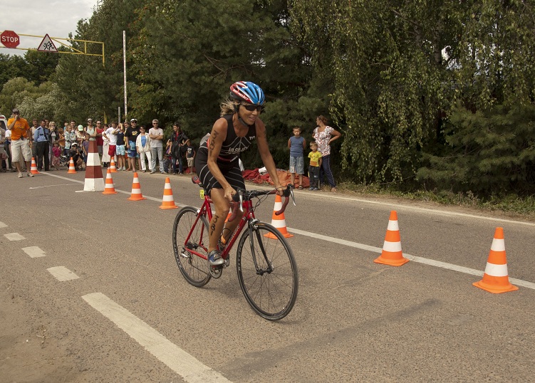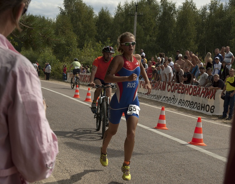 Здесь самое время вставить пару слов о болельщиках. Вообще население Бережков свой триатлон любит и относится к нему очень трепетно. С поддержкой по дистанции здесь полный порядок, народ вытаскивает стулья из дворов и рассаживается вдоль трассы задолго до старта. В 2009 я даже видела, как кто-то вытянул на улицу шланг и поливал бегунов (хоть и было жарко, нравилось не всем, однако показательно). В этом году с погодой повезло, если бы не ветер, была бы вообще идеальная. А меня поразила трибуна. Она была мало того, что полна, она голосила... в тему! Зрители кричали, топали, аплодировали и свистели всем, а знакомых приветствовали по именам. В сочетании с бесподобно подобранной музыкой это создавало настоящий драйв. У меня даже возникла мысль (правда, я её честно прогнала, но тем не менее), что можно было бы попробовать поучаствовать, ведь дистанция по сути спринтерская (я думала о народном варианте), и если не заморачиваться результатом...