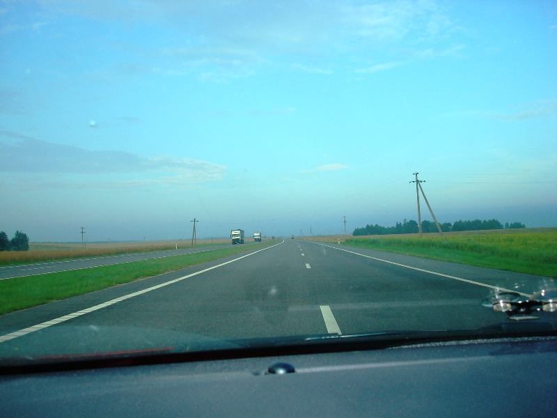 Такие просторы открываются в Белоруссии, на участке от Минска до Бреста. Дорога, правда, довольно однообразная, поэтому главное - не заснуть