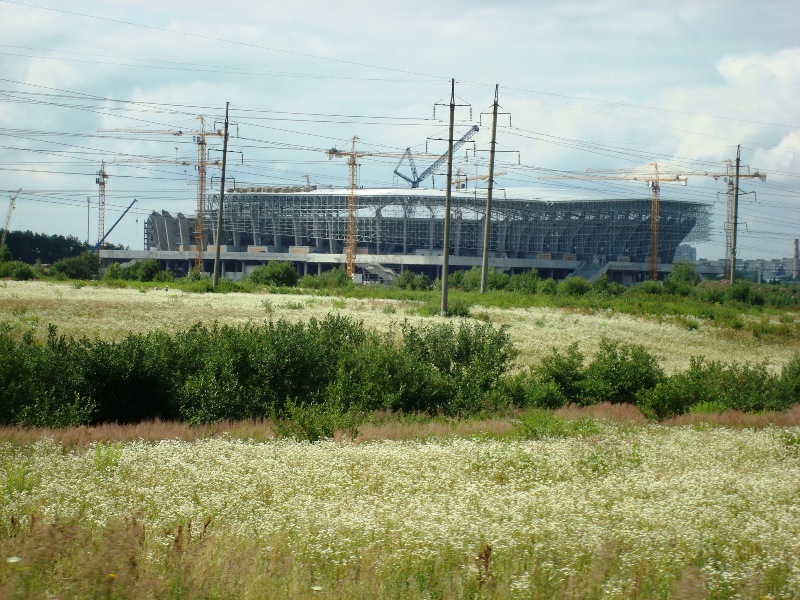 На следующий год в Украине пройдут матчи чемпионата Европы по футболу. Это строящийся к Евро-2012 стадион во Львове. Как видите, расположен он в "чистом боле". Кстати, дорога, по которой к нему можно будет подъехать, состоит из двух полос: по одной в каждую сторону.
