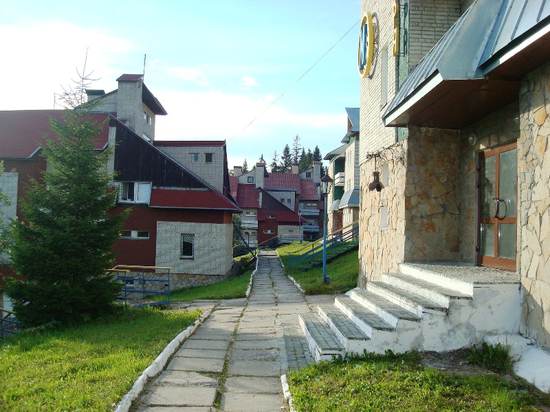 Жить на базе есть где, места для этого предостаточно, поэтому можно не опасаться, что места вам не найдётся. Конечно, если вы вывозите целую команду, то, наверное, лучше забронировать места заранее, а спортсмены-одиночки могут ехать и так. Во-первых, на территории базы есть гостиница, но жить там я бы не рекомендовал. Построена она была к Спартакиаде народов СССР начала 80-х, и с тех пор там, похоже, мало что поменялось. Если кто был в гостинице «Кавголово», что под Питером, то там приблизительно то же самое. Также на территории комплекса есть с десяток коттеджей – многокомнатных домов гостиничного типа с уникальными названиями в честь карпатских вершин, например, «Говерла», «Верховина», «Бескид» и т.д. Там условия получше, и если есть возможность, то рекомендую жить там. Стоимость проживания точно не назову, но она действительно низкая – порядка 70 гривен, то есть около 250 рублей на наши деньги. Мы же жили в самом настоящем таунхаусе, то есть в трехэтажном доме, где подъезд и есть вход в квартиру, занимающую три этажа. Таких квартир в таунхаусе около 10, условия разные, потому как они принадлежат частным лицам, но все гораздо лучше, чем в гостинице или коттеджах. На первом этаже обязательно есть своя кухня, на втором и третьем – спальни. У нас на каждом этаже также были свои душ и туалет. На кухне была вся необходимая бытовая техника: плита, чайник, холодильник, стиральная машина и даже кофеварка. Так как жили мы с Артёмом Онищенко и его семьёй, то цена для нас была очень дешевая – 150 гривен в день на двоих (1 гривна – приблизительно 3,5 рубля), Артём формально пользовался двумя комнатами, поэтому платил 200 гривен, по факту же в нашем распоряжении находился целый дом. Таких таунхаусов на территории базы несколько, так что возможность поселиться там есть. Кстати, так как база принадлежит министерству обороны Украины, там заправляют военные, у которых также можно снять квартиру в предназначенном для их проживания доме. Правда, сначала рекомендую проверить наличие холодной воды, так как, по словам живших там спортсменов, в одном из подъездов её нет. Кстати, совсем забыл добавить, что в нашем доме была настоящая дровяная сауна, и мы несколько раз с успехом её топили.
