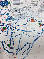 Лыжные трассы проложены толково. Кажущаяся замысловатая конфигурация петель такова, что можно сформировать круги любой протяженности с точностью едва ли не сотни метров. Очень похоже, что трассы временно занимают пространство полей для гольфа.