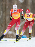По гонке казалось, что у Евгении лыжи ехали значительно лучше. Это помогало ей не отвалиться. Да и положение желтой майки обязывает. Обоих с достойной гонкой.