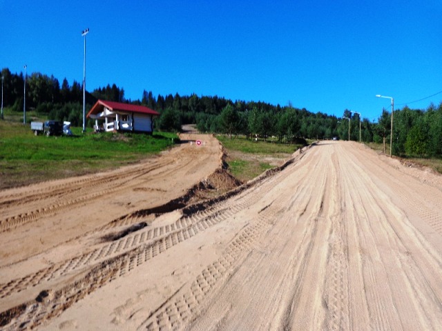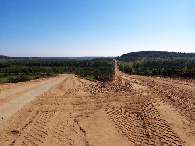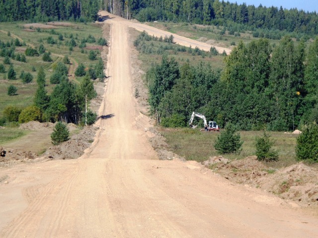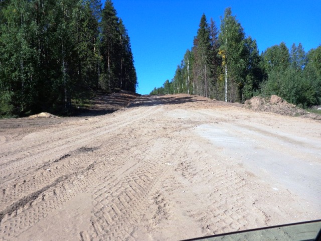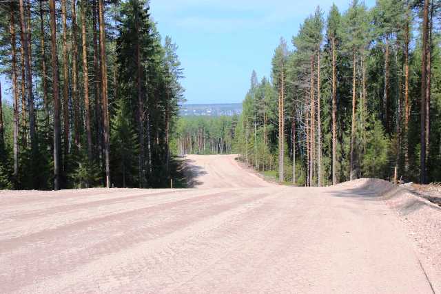 К настоящему времени произведены работы по разрубке, выкорчевке и выторфовке трассы шириной 20 метров. Трасса покрыта дорожной одеждой, отсыпана дренирующим слоем. К строительной площадке подведена высоковольтная электролиния.