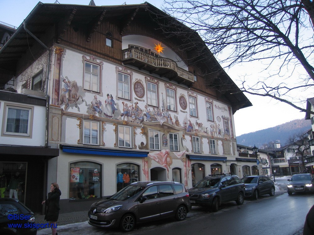 В Гармиш-Партенкирхене по-прежнему расположены американские подразделения, а когда-то там базировалась знаменитая дивизия Эдельвейс. По периметру базы есть запрет на съёмку. Тут вообще чувствуется скрытое присутствие военных. Кстати, при катании по трассе KLL в небе можно увидеть учебные полёты военных вертолётов. А в Обераммергау есть школа НАТО, которую мы осмотрели снаружи после поездки к замку Людовика-II. Школа НАТО сейчас практически превратилась в учебный центр с гостиницей.