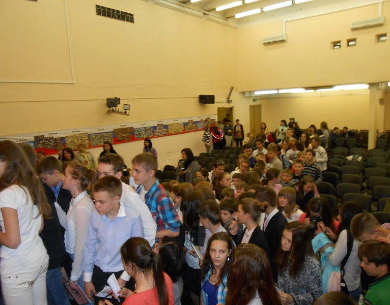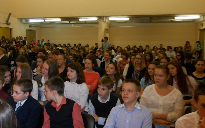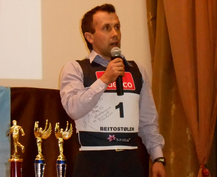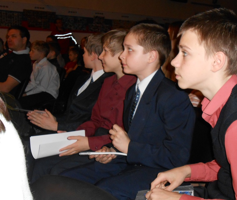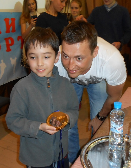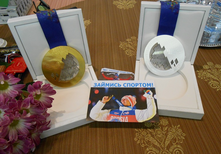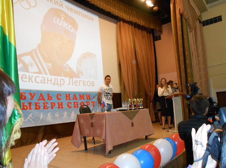 Мероприятие проходило в средней школе № 27 подмосковного города Мытищи и началось с показа ролика, посвященного победе Александра в марафонской гонке. И церемонии награждения, когда на закрытии Игр все три призовых места на пьедестале заняли россияне.