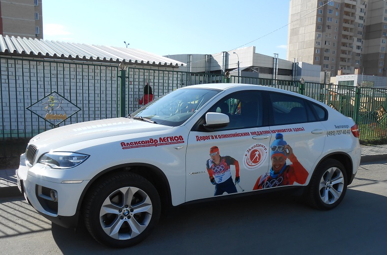 Машина с рекламой собственного экипировочного центра. 26 апреля состоялось его открытие
