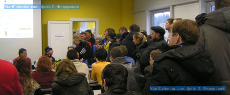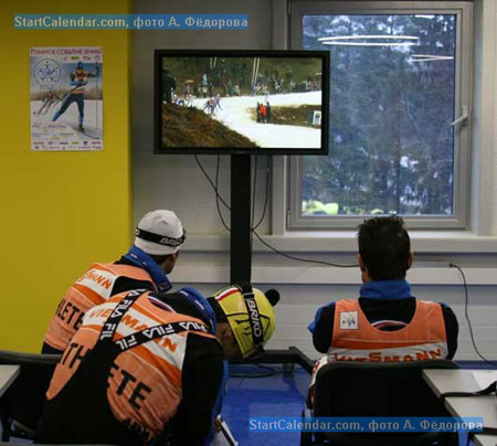 Их можно понять: для многих репортажей вполне достаточно и такого положения в тепле и уюте, но зато после финиша начинается самая работа – охота с диктофонами и микрофонами за спортсменами. В пресс-центре есть чай, кофе и булочки для желающих подкрепиться. При таком ритме работы лишние калории не страшны. Есть телефон, факс, ксерокс и принтеры, на которых оперативно распечатываются старт-листы и финишные протоколы для всех желающих. Шум в зале для «журналистского творчества» очень напоминает школьную переменку. Да и столов со стульями не всегда хватает – выкручивайся, как хочешь.