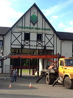 Сегодня в Одинцовском спортивном парке отдыха сменили вывеску. Новый логотип в отличие от старого более креативный. В нем появился зеленый цвет, что символизирует лесные тропинки, а коричневый – рога оленя, изображенного на обновленном гербе Одинцовского района. Добавилась надпись: ...имени Героя России Ларисы Лазутной. Но вот, что сразу бросается в глаза: если на старой вывеске был изображен лыжник, то в новом варианте логотипа фигурки спортсмена, идущего классическим лыжным ходом, нет.