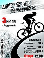 3 июля в городе Радужный Владимирской области пройдут соревнования по маунтинбайку в дисциплине кросс-кантри. Соревнования проводятся в районе лесопарковой зоны и городских родников города Радужный. Сумма перепадов высот на круге 160 метров, длина круга 4,5км. Начало соревнований в 12 часов, регистрация с 10 ч. 30 мин.