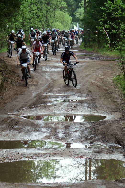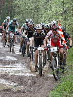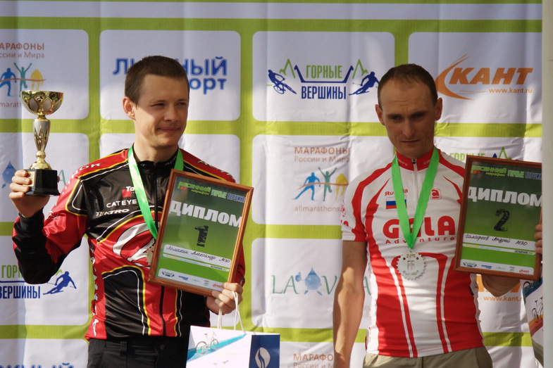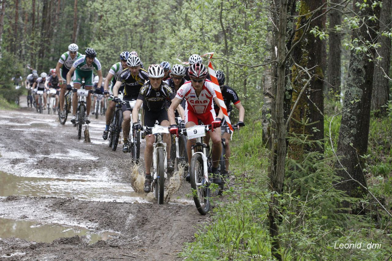 А вот в двух остальных группах не все смогли преодолеть дистанцию, которая представляла собой довольно сложный луже-грязевой трип. Из-за поздней весны и только недавно сошедшего снега - не успела просохнуть большая часть дистанции. Но сочетание жаркой погоды и грязевых прохладных ванн довольно неплохо сказалось на самочувствии спортсменов, хотя и затруднило получение полного удовлетворения от интересной и технически разнообразной трассы. В основной группе гонщиков из 80 человек, стартовавших на 2 круга - смогли проехать их лишь 63. После прохождения первого круга определилась группа лидеров в составе Ломакина Александра, Уткина Михаила, Лалина Григория и Галафеева Андрея, которые с семиминутным отрывом от остальных ушли на второй круг. Борьба на втором круге расставила всех по местам задолго до финиша. В итоге первым среди участников основной дистанции на 48 км стал Александр Ломакин, через две с небольшим минуты после него финишировал Михаил Уткин, ну а бронзовым призером стал Андрей Галафеев.