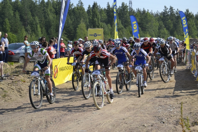 В этом году на старте можно было выделить трёх гонщиков-фаворитов. Это Александр Ломакин, победитель первого Выборгского веломарафона, Михаил Уткин, член сборной России по велоориентированию, лыжному ориентированию, показывающий сильные результаты в лыжных и веломарафонах, а также Михаил Кочкин, чемпион мира по летнему биатлону, несколько лет плотно занимающийся велоспортом и с прошлого года показывающий сильные результаты. В общем, эта группа, плюс примкнувшие к ним Григорий Лалин, Богдан Синайский, Андрей Галафеев и Григорий Мавчун, ехала до 45 километра дистанции, после чего на одном из технических участков Михаил Уткин «просеял» группу, и остаться с ним смог только Александр Ломакин. На последнем километре Михаил быть чуть быстрее и разменял своё прошлогоднее четвертое место на победу в этом году!