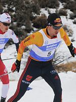 В женских соревнованиях Тара Герати-Моатс, можно сказать, победила уже после прыжковой части. Когда в промежуточном протоколе все увидели, что американка занимает первую позицию, то ее можно было начинать поздравлять. Обладая лучшим ходом на лыжне, на трассе она могла лишь увеличить свой отрыв. Так и произошло: имея на старте запас в 18 секунд, Герати-Мотс превратила его в 43-секундное преимущество. Второе место заняла пропустившая вчерашний старт норвежка Гида Вествольд-Хансен, а Стефания Надымова замкнула тройку сильнейших. Г. Вествольд-Хансен, Т. Герати-Мотс, С. Надымова; Д. Дежори, Ж. Новак, В. ДжанмоенаДенис Тишагин Результаты соревнований