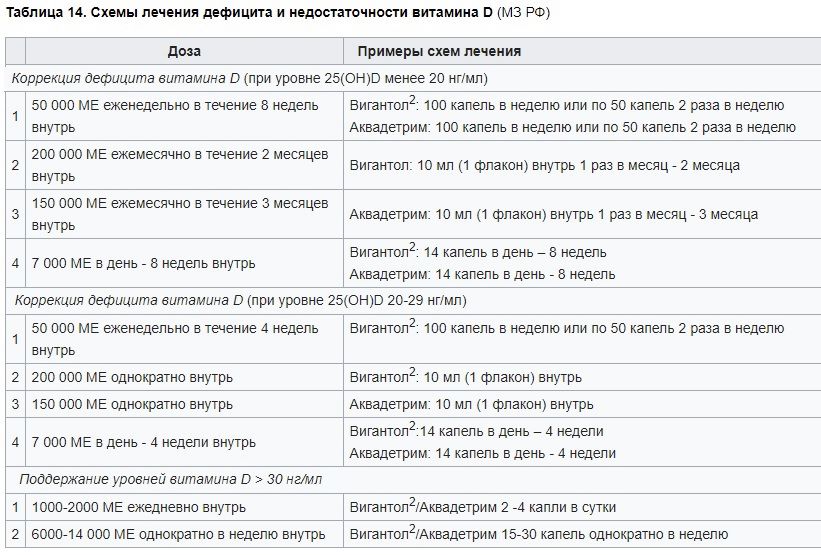 Если уровень витамина D (25-гидроксикальциферол) в крови ниже 15-20 нг/мл (38-50 нмоль/л), то необходимо принимать ударную дозу 50000 МЕ (пятьдесят тысяч Международных Единиц) раз в неделю на протяжении 6-8 недель. Иначе уровень поднять не удастся. После чего необходимо сделать повторный анализ крови, проверить эффект.