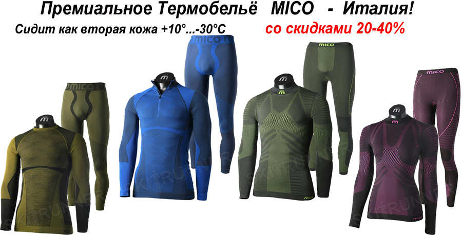 Mico - это термобельё, а также термоноски и гольфы премиум качества, которые производят реально в Италии, а не Китае, как у всех импортных брендов. Сам я тестирую бельё Mico Extra Dry и вот такие термоноски уже второй сезон и могу с уверенностью сказать, что это даже лучше чем CRAFT, поклонником которого я всегда был. В частности, Mico Extra Dry - это элитное термобельё с максимальным влаговыводом и компрессионным кроем. По функционалу это примерно аналог CRAFT Active Extreme 2.0 и Active Intensity, но крой и дизайн мне нравится больше, в частности, лёгкая компрессия и зональные вставки в необходимых местах позволяют добиться лучшей посадки. Бельё сидит как вторая кожа. Термоноски - такой же положительный опыт, точно не уступят моим любимым CRAFT. В целом, я вижу Mico как очень достойную замену экипировки CRAFT, а в чём-то даже превосходящую.