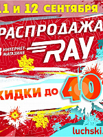 Не пропустите! Только 11 и 12 сентября в интернет-магазине RAY состоится большая осенняя распродажа со скидками до 40% (лыжные смазки; инструменты; спортивное питание; профессиональная спортивная обувь брендов Asics, Mizuno, Salomon; повседневная и трекинговая обувь; компрессионные тайтсы и лосины и многое другое). Успевайте воспользоваться выгодными условиями!