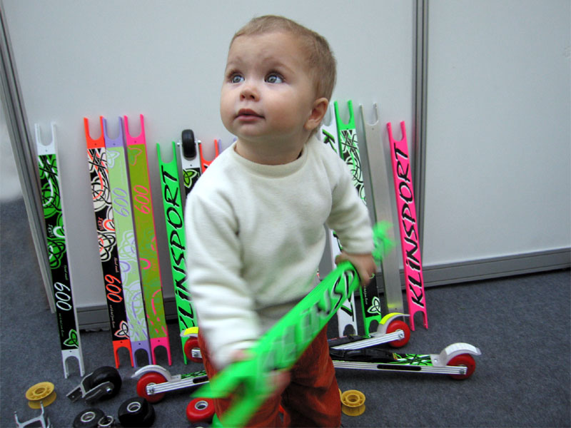 Впервые появились лыжероллеры для младших детей, чего раньше не было, поскольку производилась, либо закупалась, некая усреднённая модель для всех. Мы отошли от этой формулы и приняли решение специально сделать модель лыжероллеров для маленьких детишек. Им же очень неудобно делать свои первые шаги на лыжероллерах с длинной для них платформой и на довольно быстрых колёсах. Здесь же, наоборот, всё продумано и комфортно, нет каких-либо сложностей, поскольку вся совокупность функционального наполнения модели - а это длина рамы, ширина и диаметр колёс, состав материала колёс, вес лыжероллеров - позволяют ребёнку делать свои первые шаги на них более уверенно, чем было до этого. Впрочем, тут учитывался и зарубежный опыт. Хотя, что тут скрывать, у них – здесь в первую очередь речь идёт об одной скандинавской стране, регулярно штампующей всевозможных чемпионов – лыжероллеры для малышей делаются ещё короче – 430 мм. в осях. Мы не стали пока выходить с предложением столь короткой базы, поскольку должно появиться осознание нужности таких изделий, а это, к сожалению, для большинства представителей наших спортшкол, процесс нескорый. Впрочем, я сомневаюсь, что этот вопрос многие тренеры начальных групп и их руководители знают и отслеживают, в отличие от нас. Многие ведь уже привыкли к некому "шаблонному мышлению", которым мы никогда не «славились», да и зарубежный опыт использования лыжероллеров в подготовке детей младшего возраста вряд ли доступен большинству из них.