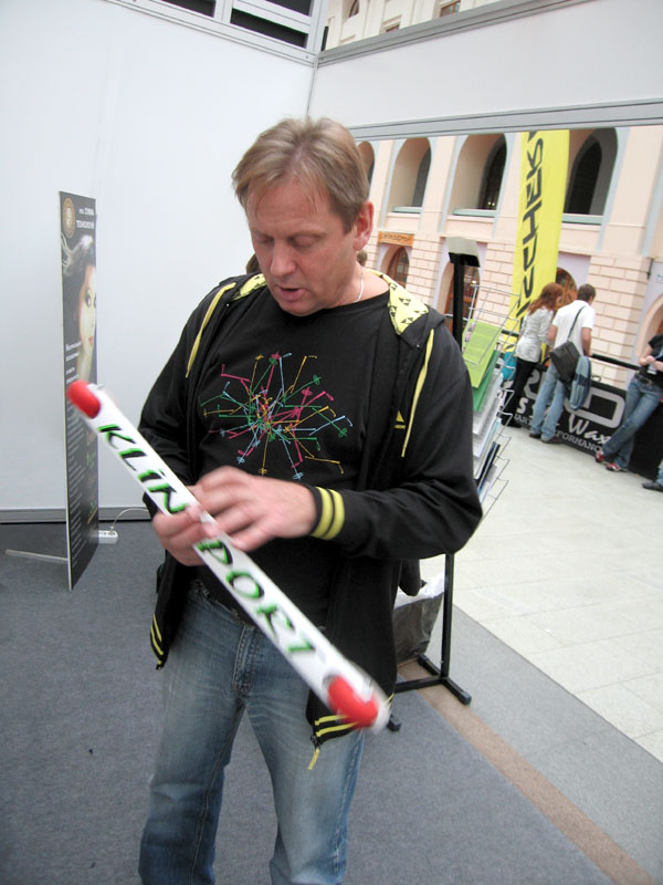 На прошедшей выставке "Лыжный салон-2010". Деловито и серьёзно молодое поколение подошло к выбору понравившейся спортивной экипировки: «Дядя, скажи-ка, а это что ещё за прибамбасик такой?»