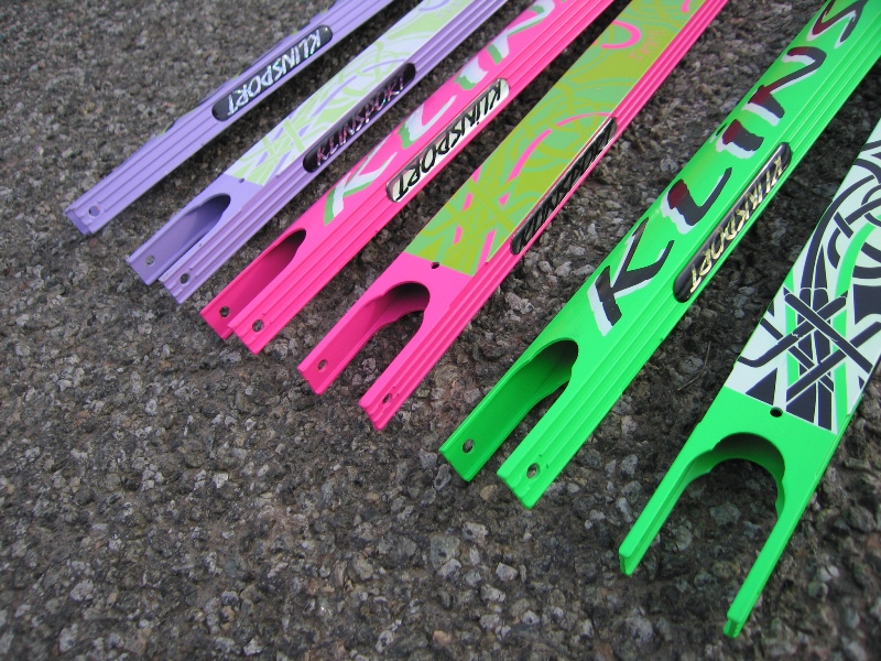 Итак, хоть процесс формирования линейки моделей лыжероллеров завершён не полностью, и будут происходить определённые изыскания и последующие трансформации, но в целом, если условно принять за основу отправную точку от начала пройденного пути, некая модельная концепция начинает вырисовываться. Создаётся логичность выстраивания функциональности моделей лыжероллеров. Речь сейчас идёт в первую очередь о "коньковых" лыжероллерах, поскольку в этом году мы всё своё внимание уделили исключительно им. Мы перешли на новый профиль трубы, который был специально нами сделан под эти цели. В основе геометрии профиля лежит ещё Советская разработка 80-х годов. Многие из тренеров и ветеранов наверняка вспомнят "классические" лыжероллеры, их ещё называли "Сибирячка", если мне не изменяет моя память. Такие, с широченными классическими резиновыми колёсами, где сам профиль трубы был с рёбрами жёсткости по краям. Мы этот профиль несколько видоизменили, придав другую геометрию отдельным плоскостям, ну и добавили элементы дизайна в виде рисунков и вклеиваемого сбоку шильдика. "Классические" модели, включая модели и для малышей – это уже работа на другой период.