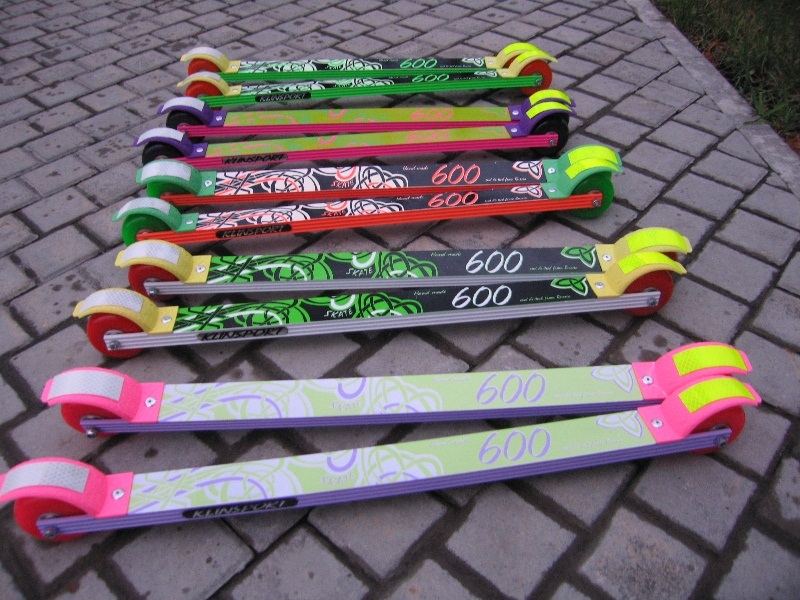Помимо детских моделей появились две разновидности "коньковых" лыжероллеров, которые отличаются друг от друга только длиной. У этих моделей отличие не столь значимо, так как разница в расхождении размеров составит всего два сантиметра. Я сразу проясню, функционал у них одинаков, а речь здесь идёт о платформах лыжероллеров, имеющих длину в осях 580 и 600 мм.