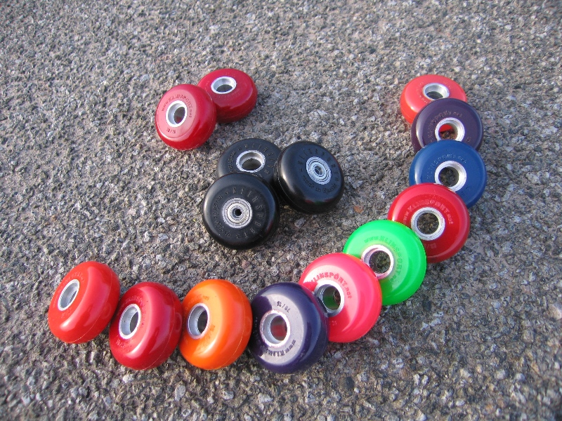 Это те самые, «КЛИНСПОРТ»овские колёса! Несмотря на такое довольно большое количество колёс на этом фото, здесь представлен лишь только один их типоразмер, а именно – 70/30. Самих же разновидностей колёс будет более 20 у коньковых и около 20 у классических, поскольку и самих моделей лыжероллеров будет значительно больше, чем обозначено сейчас на сайте. Впрочем, и на импортные модели многие из них подойдут на замену.