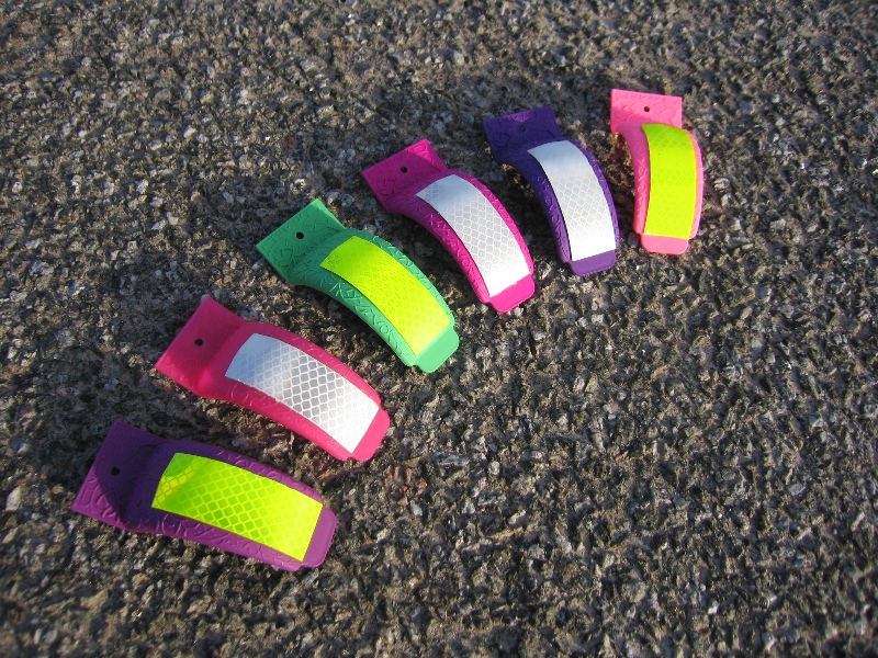 Так будут выглядеть брызговики у лыжероллеров. Разноцветные полоски – это световозвращающие вставки из специального материала. "Иногда, когда люди катаются вечером, полезно "сверкать" на дороге," – говорит Владимир Никифоров, - "Поэтому мы сейчас пробуем ввести этот элемент в конструкцию лыжероллеров. Получится или нет, это ещё открытый вопрос. Пока, есть потребность внести изменения в геометрию радиусных кривых линий данной детали, поскольку сама вставка должна лежать в нём лучше. Будем менять брызговик». Пустячок, но приятно!