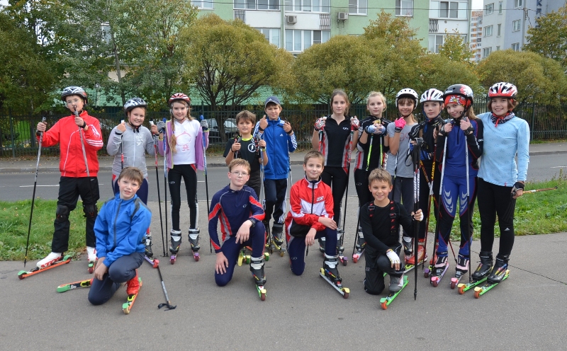 На фото: Дети из одной московской спортшколы. Найдёте здесь хоть одну пару импортных лыжероллеров?