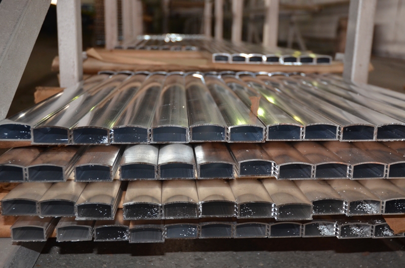 На фото: Готовые к дальнейшей термической обработке профилированные рамы российских лыжероллеров. При их производстве использован специальный сплав алюминия с соответствующими технологическими добавками.
