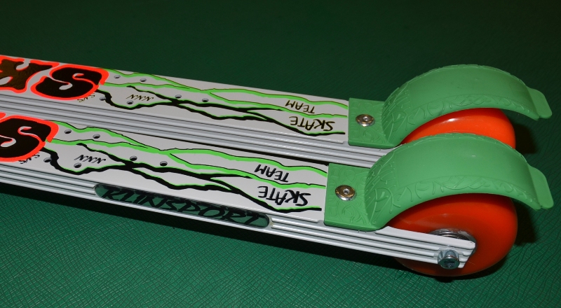 Посмотрите! Насколько здесь всё красиво, эстетично и продумано в деталях. А когда встаёшь на эти лыжероллеры и начинаешь делать свои первые шаги, то ловишь себя на мысли, что платформа здесь, оказывается, очень удобная. Брызговики сделаны лучше и более правильно, поскольку с колёс у роллеров на ноги совсем ничего не летит, если ты едешь уже по мокрой дороге. Да и сам материал здесь очень качественный, лучше, чем у многих подобных импортных изделий, которые довольно быстро отваливаются или запросто ломаются. На этих лыжероллерах, с прошлого года, уже появились отверстия под установку сразу двух разных типов лыжных креплений. Теперь не надо искать, где и как правильно, точно, высверлить отверстия под свои крепления – они уже предусмотрены, точно и грамотно сделаны. Только для тяжеловесных любителей лыжероллеров, килограммов так за сто с небольшим, отверстия пока не сверлят. Им удобнее будет поставить крепления по своему усмотрению. Всё это, вроде, пустяки, мелочи, но как раз именно из таких вот мелочей и складывается общий класс продукции. А поскольку в этих многих мелочах наше отечественное изделие оказываются в итоге сделанными более интересно, качественно и грамотно, то класс этих российских лыжероллеров сейчас необычайно высок.
