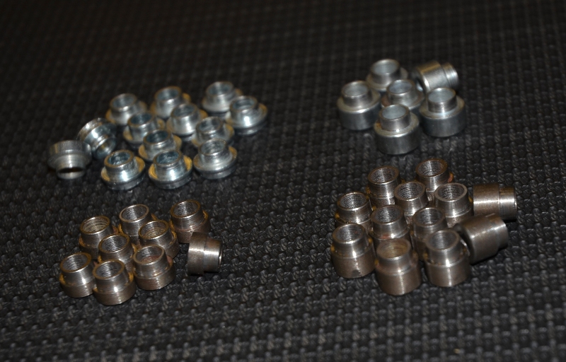 На фото: На переднем плане - Вот такой будет оснастка у «коньковых» колёс российских лыжероллеров «КЛИНСПОРТ» через некоторое время. Это внешние боковые упорные втулки у колёс. Изготовлены они по двум абсолютно разным технологиям – точение и прессование.