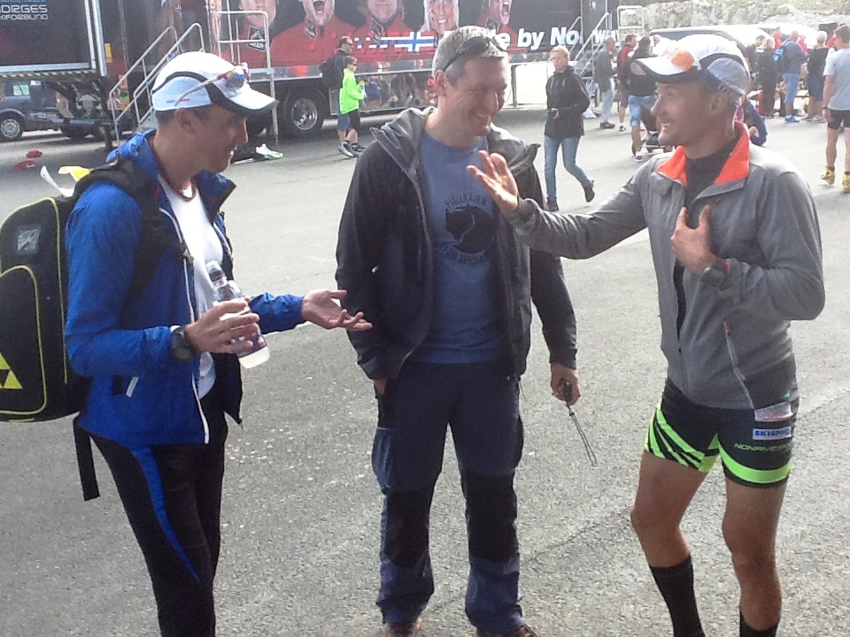 У Русской марафонской команды появились свои болельщики. Михаил (в центре) приехал после анонса на www.skisport.ru на гонку поддержать своих. Благодарные В.Рочев (слева) и Е.Сорин (справа).