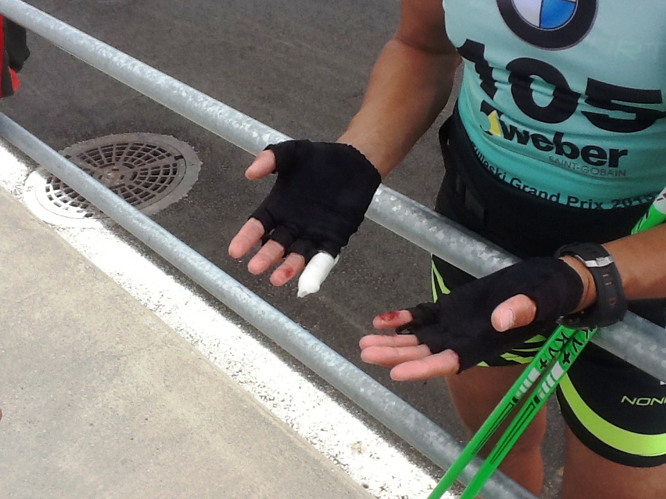В программе Гран-При было много других роллерных состязаний. Это и старты для детей, инвалидов. Забеги на суперспринтерскую дистанцию 100м собрали очень представительный состав, включая норвежского рекордсмена мира на лыжной "сотке". Как раз с ним свел жребий Андрея Тютерева в первом четвертьфинале. Питерский лыжник, вдохновлённый успехом в марафоне, решил спустя пару часов после финиша провериться и в спринте. Но длинная гонка отняла много сил. А рекордсмен стал победителем стометровки.