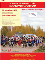 7 октября 2007 года в 11.00 на олимпийской велотрассе в Крылатском состоятся соревнования по лыжероллерам, посвященные 90-летию Российского Госудапственного Университета физической культуры, спорта и туризма. Стиль прохождения дистанции - свободный. Основная дистанция соревнований - 12,6км. (3 круга по малому велокольцу).