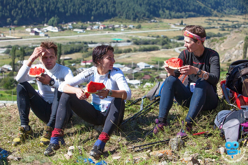 На Эльбрусе пришлось выжать из себя все соки! Было жестоко, под конец мы и на резинке друг друга тащили, перекладывали вещи из рюкзака в рюкзак. В финале дистанции у каждого в рюкзаке могли быть чьи угодно вещи!