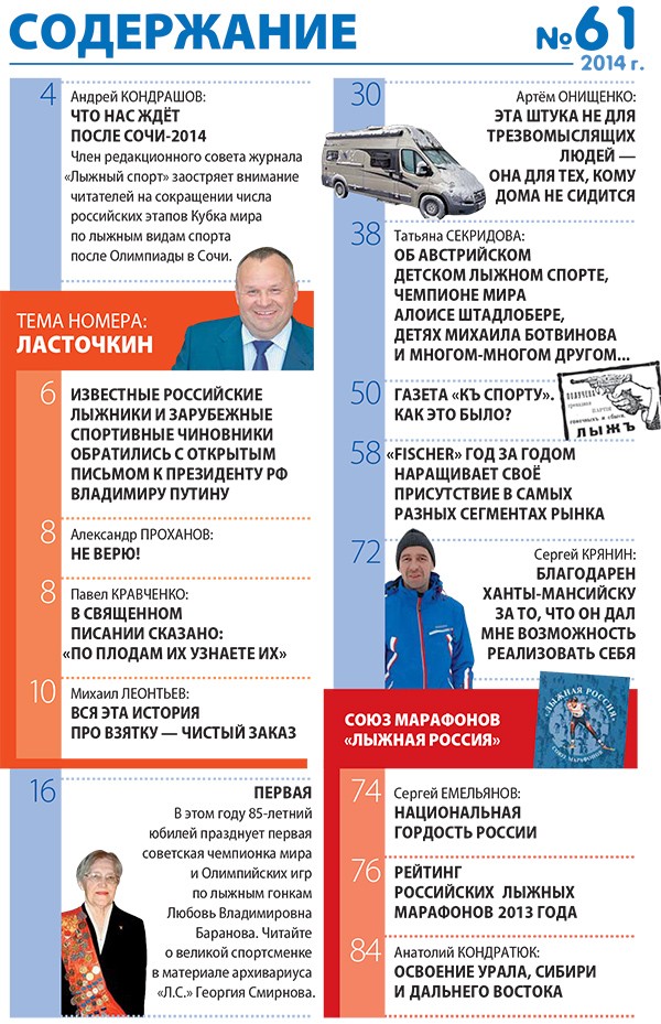 Содержание журнала «Лыжный спорт» №61